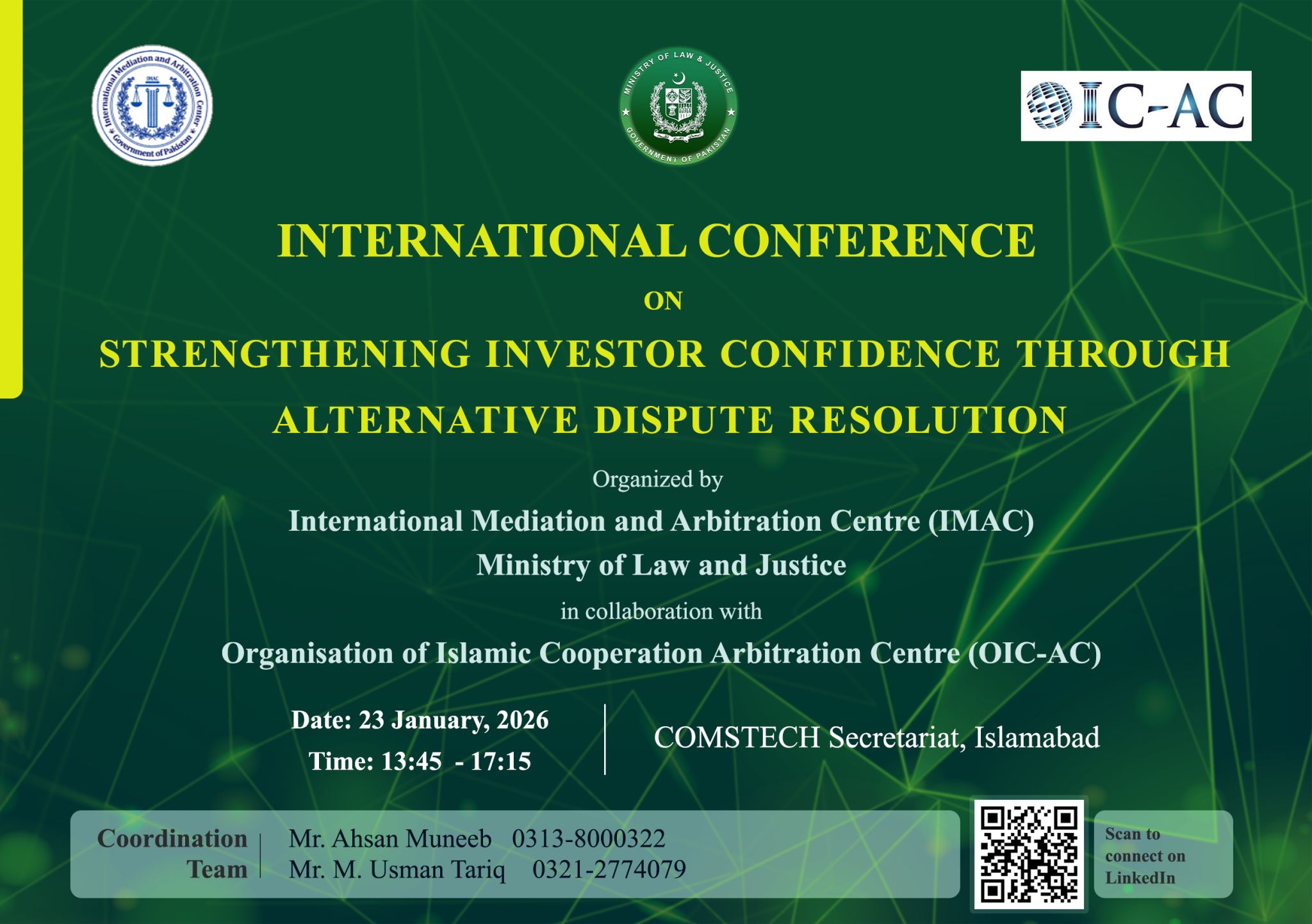 Our firm attended the international conference on ADR organized by IMAC and OIC Arbitration Centre, featuring Hon'ble Mr. Justice Shahid Waheed and prominent legal practitioners.