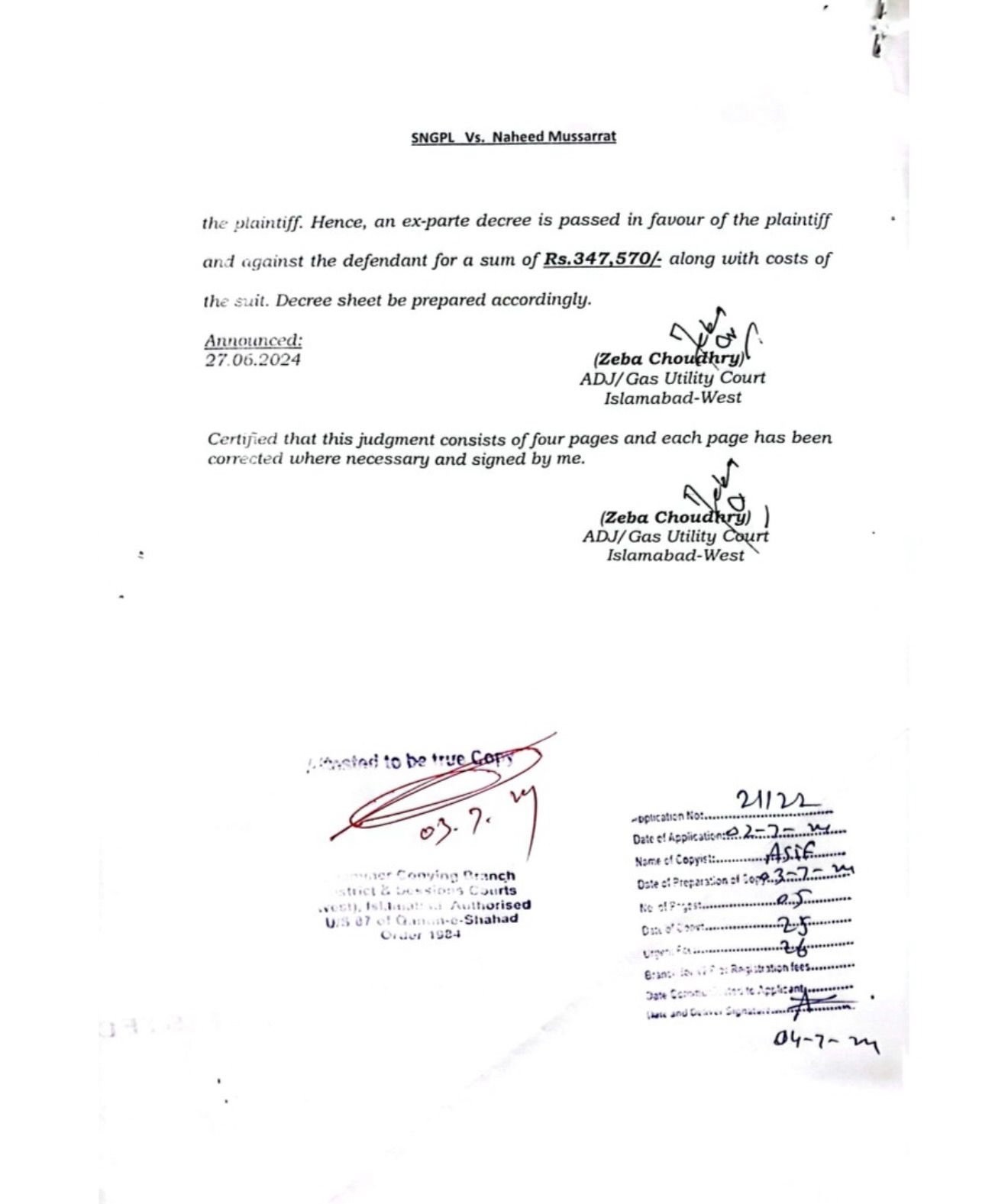 Advocate Waleed Ahmad successfully represented SNGPL in a recovery case, securing a favorable verdict through diligent preparation and strategic advocacy.